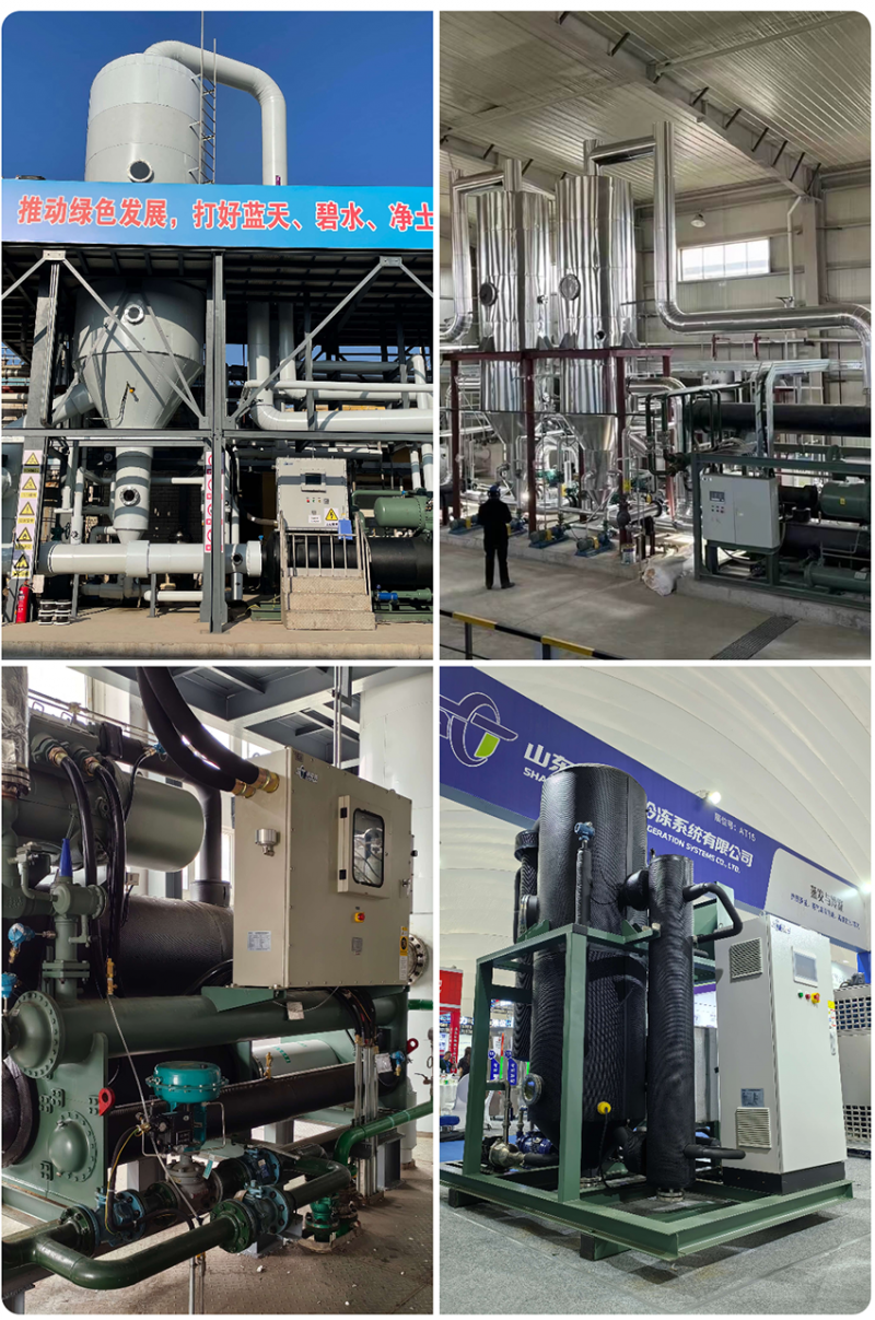 由于熱泵壓縮機壓縮的是選擇的熱泵工質,可以匹配各種壓縮機:螺桿壓縮機、渦旋壓縮機、離心壓縮機、活塞壓縮機、羅茨壓縮機,可以雙級壓縮或復疊壓縮,因此可以適應各種溫差的精餾工藝;